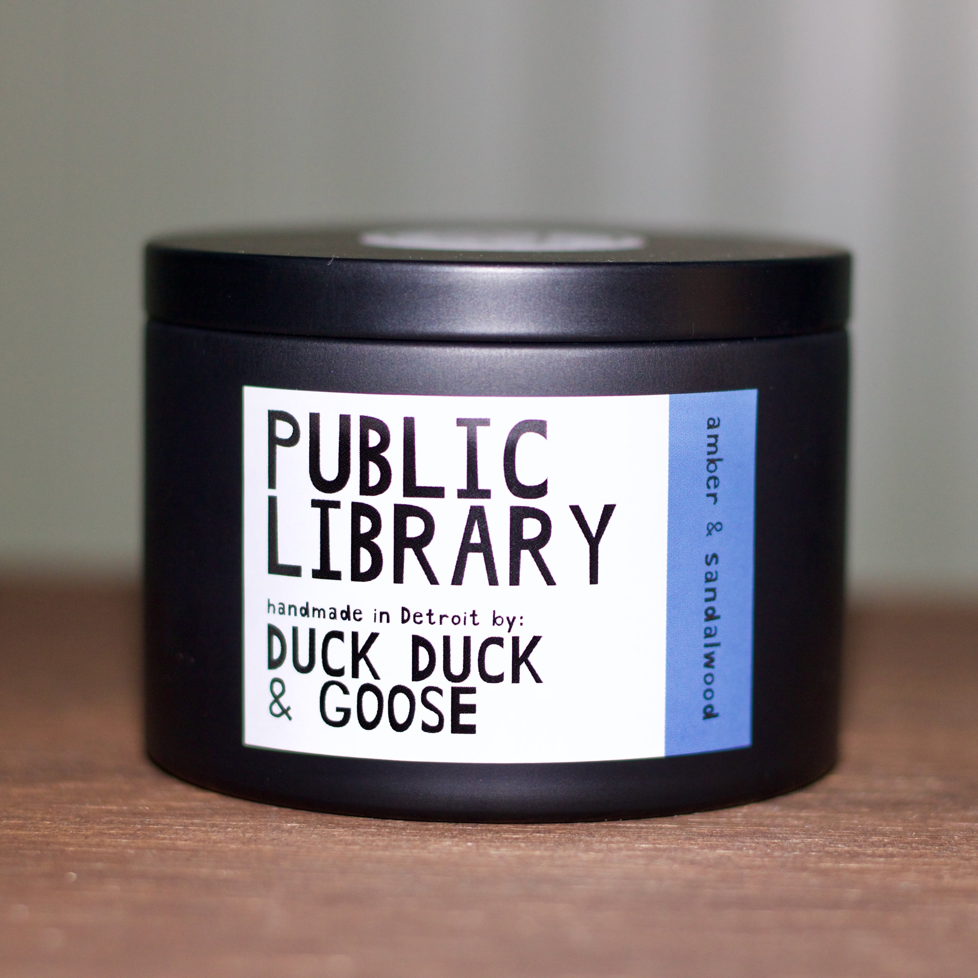 Amber & Sandalwood Scented Soy Candle: Public Library