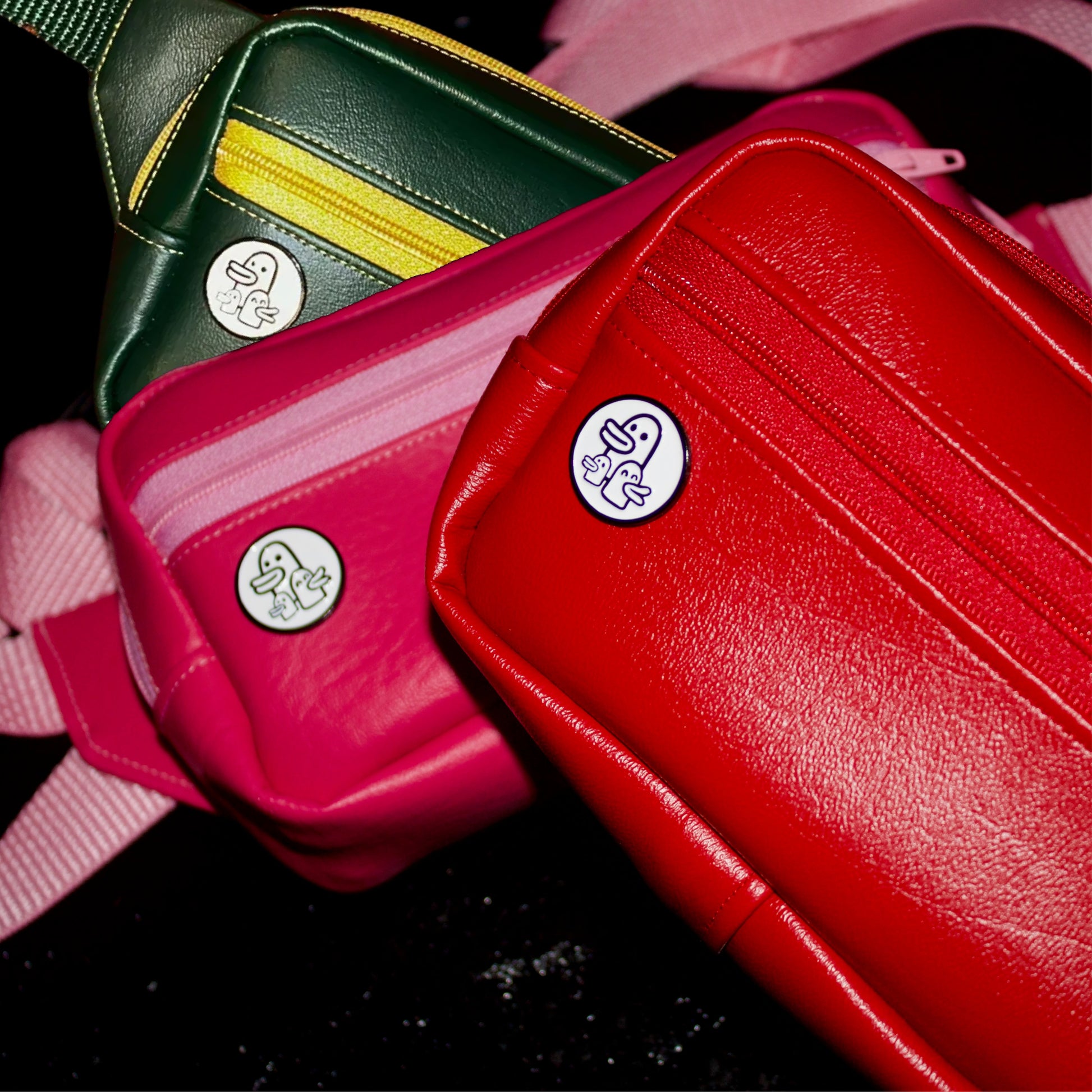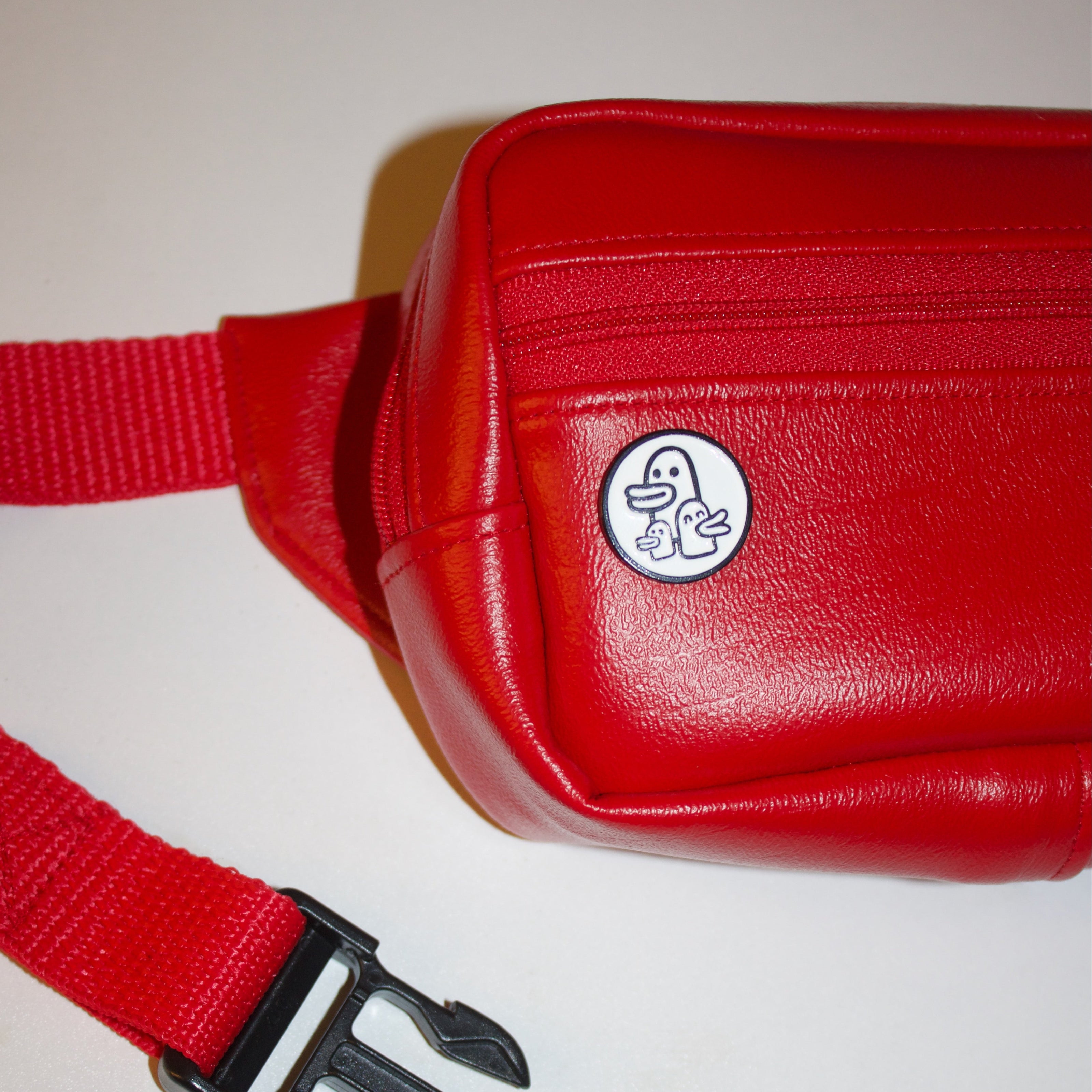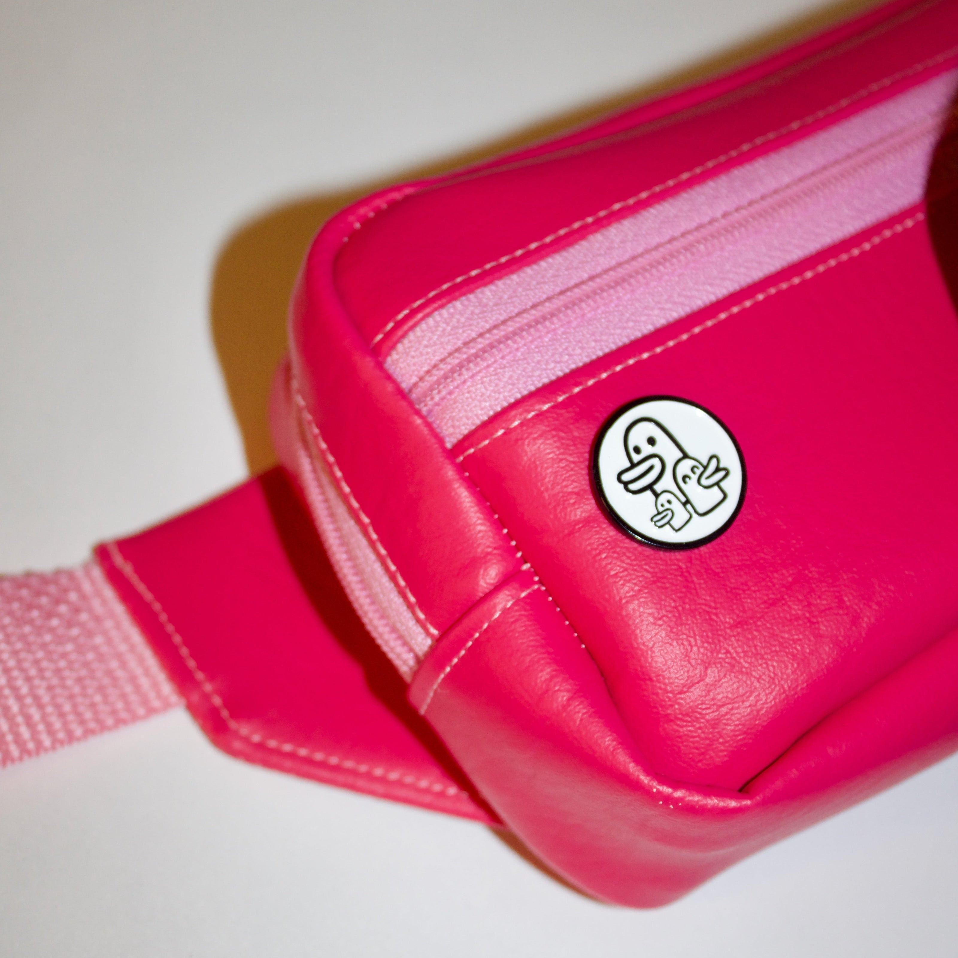 Classic Quack Pack - Vinyl with enamel pin & two zipper compartments made with Marine Vinyl in an array of colors. Each are 4" x 7" in size with cow print cotton lining - perfect for concerts or sporting events.